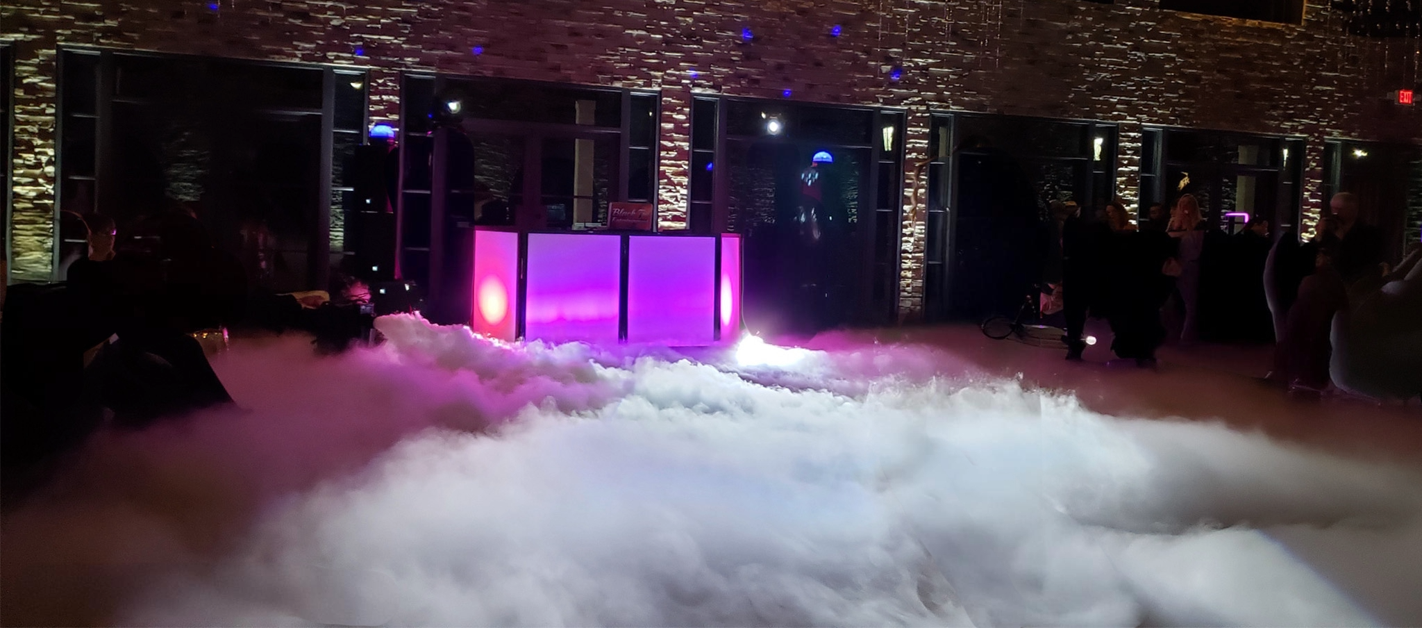 Giving the DJ Booth some ambience for your guest Make your 1st dance magical with our low lying dry ice machine.